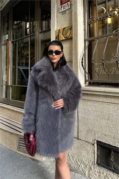 Şıklığı ve iddialı duruşu bir arada sunan Antrasit peluş kruvaze yaka mont, şehir stiline güçlü bir karakter kazandırır. Yumuşak dokulu peluş kumaşı ve astarlı yapısı sayesinde konforlu bir kullanım sunar. Kruvaze yaka tasarımı montun duruşunu öne çıkarırken, düğmeli kapama detayı klasik ve zarif bir görünüm sağlar. Cepli yapısı günlük kullanımda pratiklik sunar. Geniş kalıp oversize kesimi rahat bir siluet oluşturur ve modern kombinlere kolayca uyum sağlar. Elbise, etek ve pantolonlarla kombinlenerek günlük şıklıktan özel davet stiline kadar geniş bir kullanım alanı sunar.