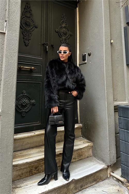 Siyah kısa kürk mont yumuşak dokulu yapısı ve modern duruşu ile öne çıkar Astarlı yapısı sayesinde soğuk havalarda konforlu kullanım sunar Önü açık tasarımı katmanlı kombinler için idealdir Kısa boy kesimi pantolon etek ve elbiselerle kolay kombinlenir Günlük şehir stilinden şık kombinlere kadar geniş kullanım alanı sağlar