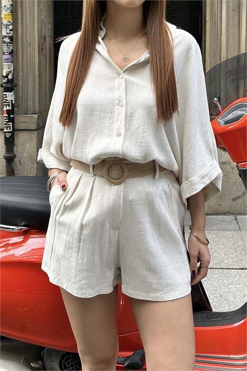 Kadın Taş Keten Salaş Gömlek Şort Takım ESR037