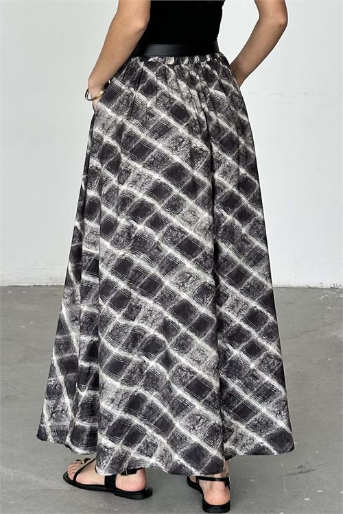 Modern desen yapısı ve akışkan formuyla öne çıkan uzun etek modeli, tesettür kombinler için hem şık hem konforlu bir alternatif sunar. Bel kısmında yer alan kemer detayı sayesinde vücut formunu zarif şekilde vurgular. Dökümlü yapısı ile hareketli ve estetik bir görünüm sağlarken, gün boyu rahat kullanım sunar. Günlük stilinizden özel kombinlerinize kadar geniş kullanım alanına sahiptir.