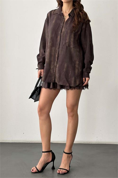 Modern ve güçlü bir stil sunan bu ikili takım, gömlek yaka tasarımı ve kat kat etek detayıyla dikkat çeker. Rahat kalıbı sayesinde gün boyu konfor sunarken, hareketli yapısıyla feminen ve iddialı bir görünüm kazandırır. Hem günlük şık kombinlerde hem de özel davetlerde rahatlıkla tercih edilebilecek zamansız bir parçadır.