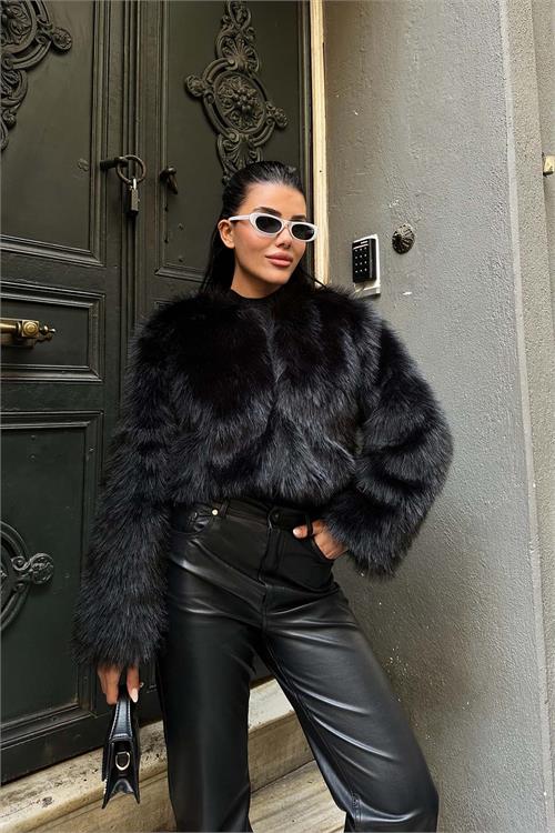 Siyah kısa kürk mont yumuşak dokulu yapısı ve modern duruşu ile öne çıkar Astarlı yapısı sayesinde soğuk havalarda konforlu kullanım sunar Önü açık tasarımı katmanlı kombinler için idealdir Kısa boy kesimi pantolon etek ve elbiselerle kolay kombinlenir Günlük şehir stilinden şık kombinlere kadar geniş kullanım alanı sağlar